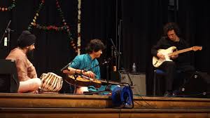 This Trio takes the audience on a dynamic and exciting journey through the world of Indian Classical Music. The spontaneous interaction and passion felt when they play together is truly compelling. The music they play is essentially very pure and in keeping with tradition, but the inclusion of the electric guitar creates a sense of openness to embrace new timbres and melodic nuances without compromising the original spirit and intensity of the music. This is a rare combination of instruments and Musicians from different backgrounds, embracing the music that brought them together.