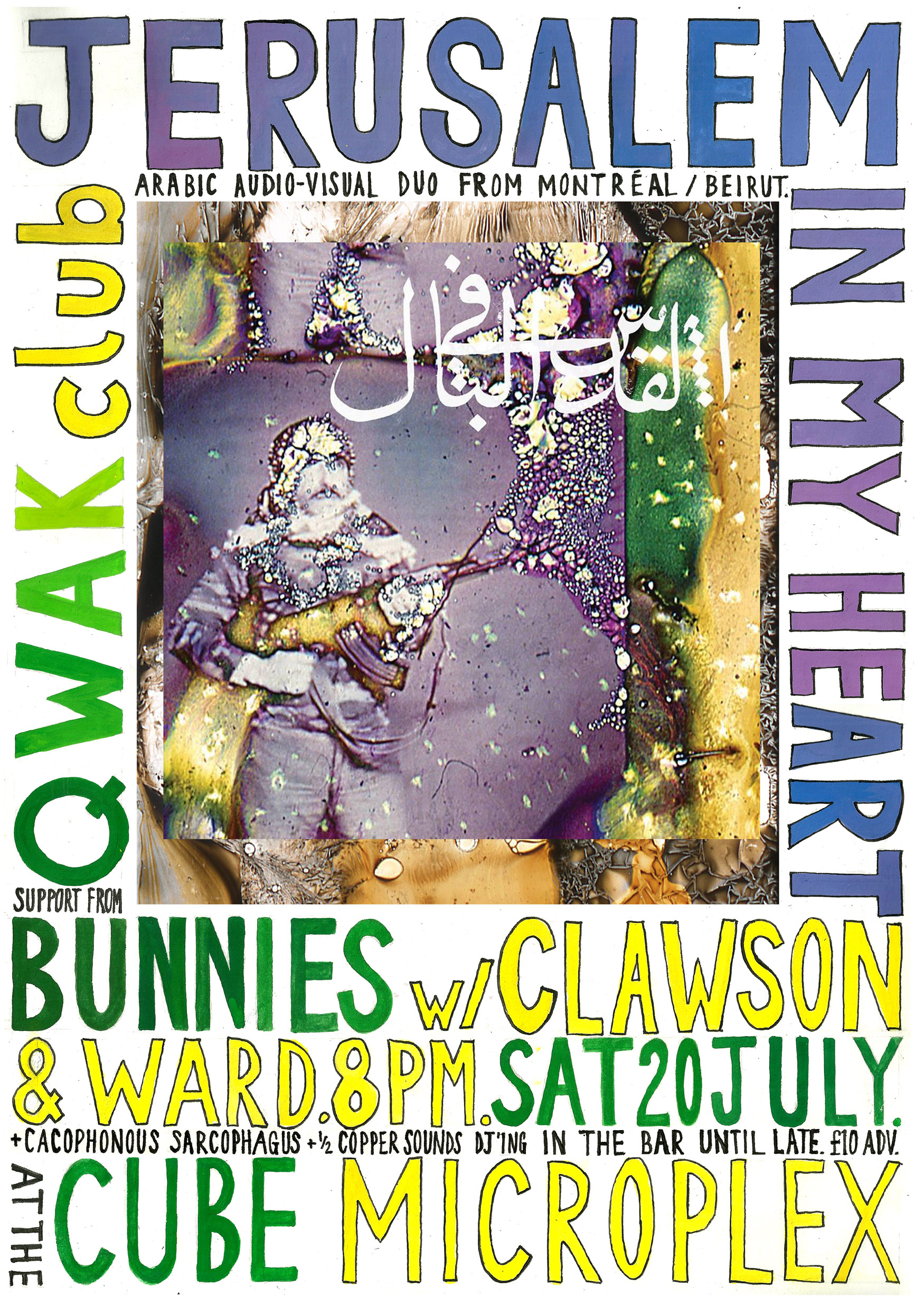 Montréal-Beirut contemporary Arabic audio-visual duo of composer-producer Radwan Ghazi Moumneh, voice, electronics, buzuk and other instrumentation and Charles-André Coderre, whose innovative 16mm film techniques frame JIMH’s entire visual identity – currently using archival photos from the Arab Image Foundation, which have been re-photographed and subjected to experimental chemical treatments of Coderre’s own invention. JIMH are undoubtedly one of the most engaged and forward-looking groups at work in avant-garde Middle Eastern music today.
