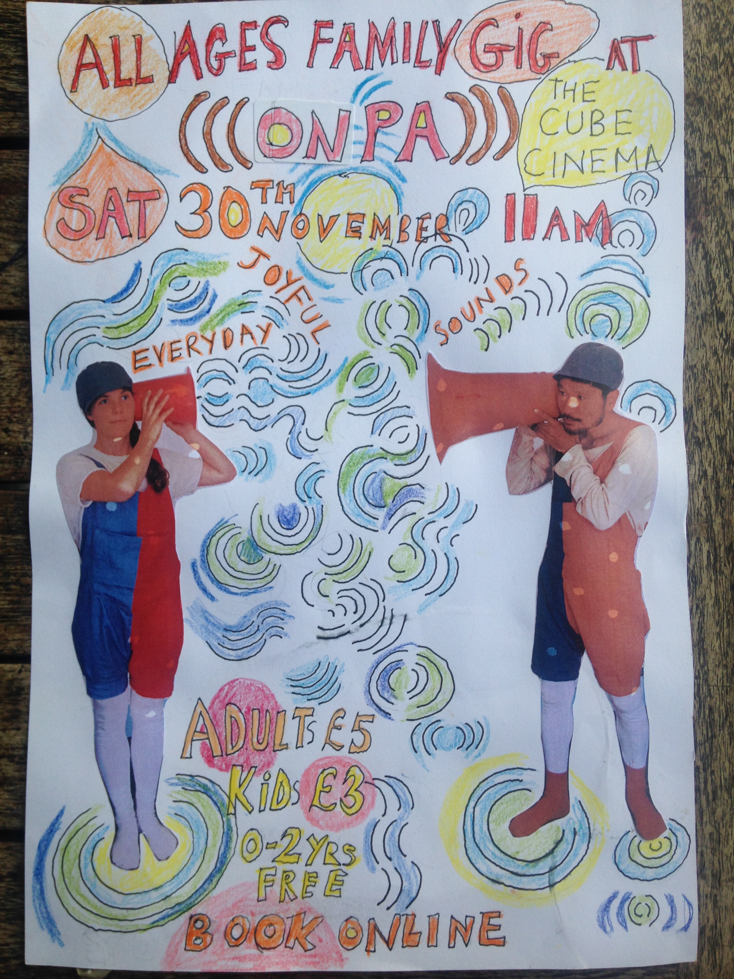 ((( On Pa ))) meaning sound wave in Japanese, is the collaboration of Japanese musician and inventor Ichi and contemporary English folk artist Rachael Dadd. Their new performance is a joyful and exploratory celebration of sounds from our everyday lives fused with live drawing using an overhead projector. Water, paper and books, ball games, clapping, balloons, bottles and cooking utensils are used alongside voice, steel drum, xylophone, clarinet banjo and handcrafted instruments made from found objects. ((( On Pa ))) is an experience to be universally shared and enjoyed by all cultures and all ages and they invite you the audience to become an orchestra with them. In particular (((On Pa))) would appeal to ages 0-10yrs.
