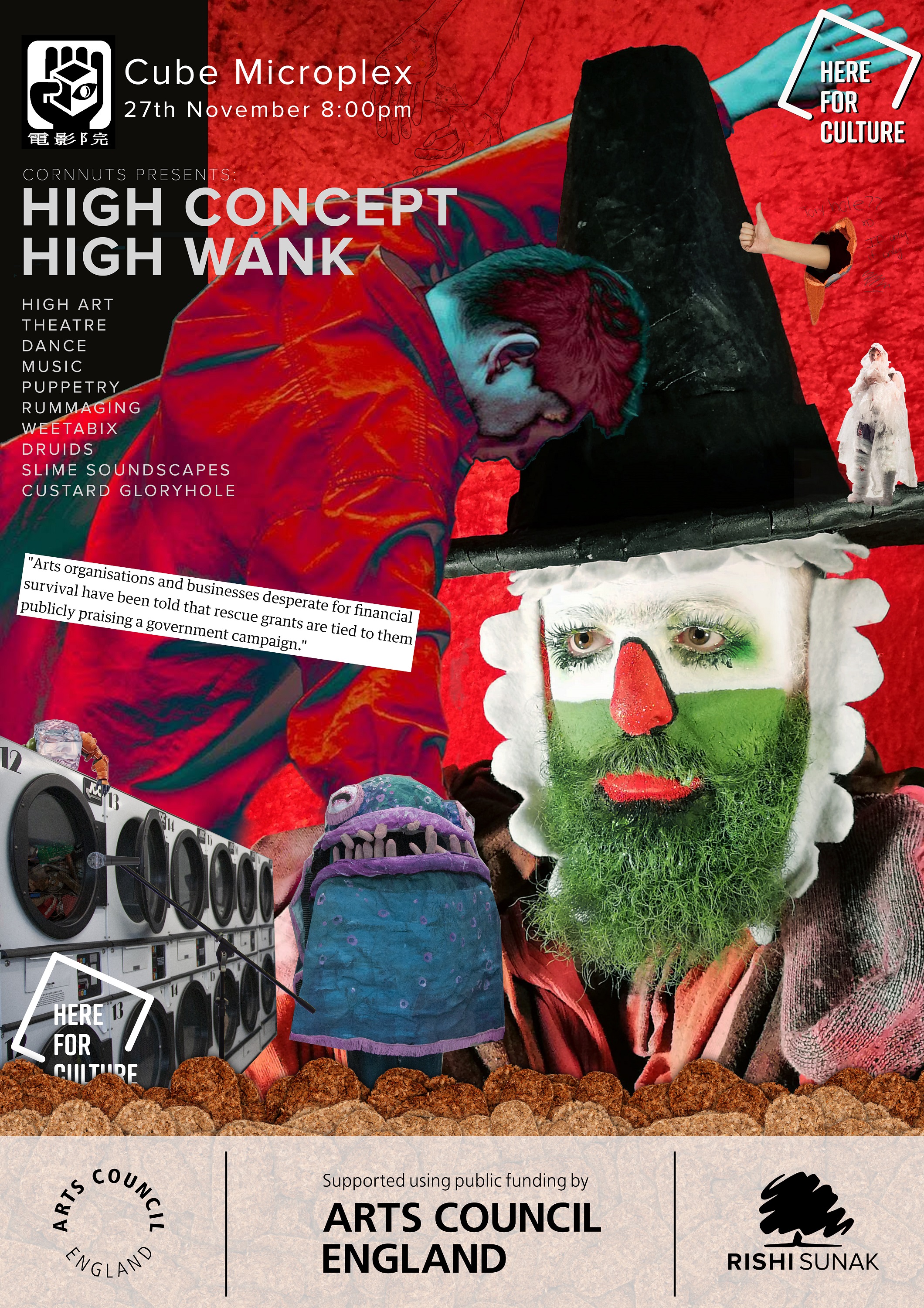 As part of the Sunak Government Culture Recovery Program we're able to provide a unique showing across a broad range of artistic endeavors in a strictly one night event. High Concept High Wank is a exploration of art-as-art rather than art-as-entertainment. We seek to engage the community in art-as-philosophy and meta-artistic discourse, to bridge the gap in understanding between us as human beings which language can never reach. Each piece seeks to elucidates a piece of truth, to pluck it from nature itself and sow it within us; a piece of non-sense used as steps to climb beyond them. We do not believe that the former is refuted by the latter but that each step does not contradict one another, but where one is as necessary as the other. The bud disappears when the blossom breaks through; the fruit appears as the apex of the plant, somersaulting over the bloom into an organic unity as the sprouting of life as a whole. It is rather that to transcend the aesthetics of art is, so to speak, to throw the ladder after one has climbed it.