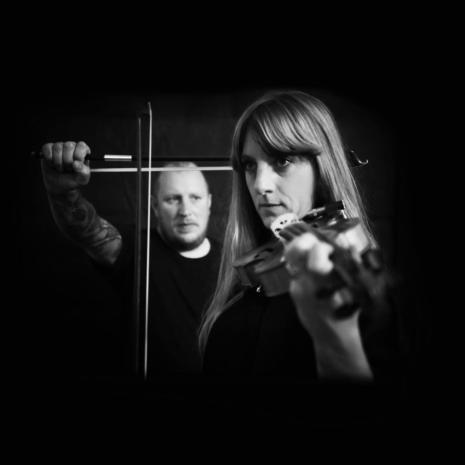 KURO are an Electric Strings Duet. They take their name from the Japanese word for ‘black’, and their debut release for Rocket Recordings marks an experimental union between two diversely storied yet inherently like-minded musicians. Agathe Max, who hails originally from Lyon, is a classically-trained violinist with a varied back catalogue of studio and live work - running the gamut from spectral ambience to stately soundscapes and adept at summoning dreamstates and drama alike, her emotive and engaging work has found admirers at a number of UK festivals such as Supersonic and Raw Power. The Bristol-based Gareth Turner, meanwhile, maintains a busy schedule performing and recording with Rocket Recordings trio Anthroprophh (alongside The Heads guitarist Paul Allen) bass/drums duo Big Naturals, and his solo double-bass project Salope, as well as working as a touring tech for Melvins on their trips to Europe. Yet despite both of these artists’ multi-faceted artistic lives, their partnership was both a natural progression and reflective of an intuitive chemistry.