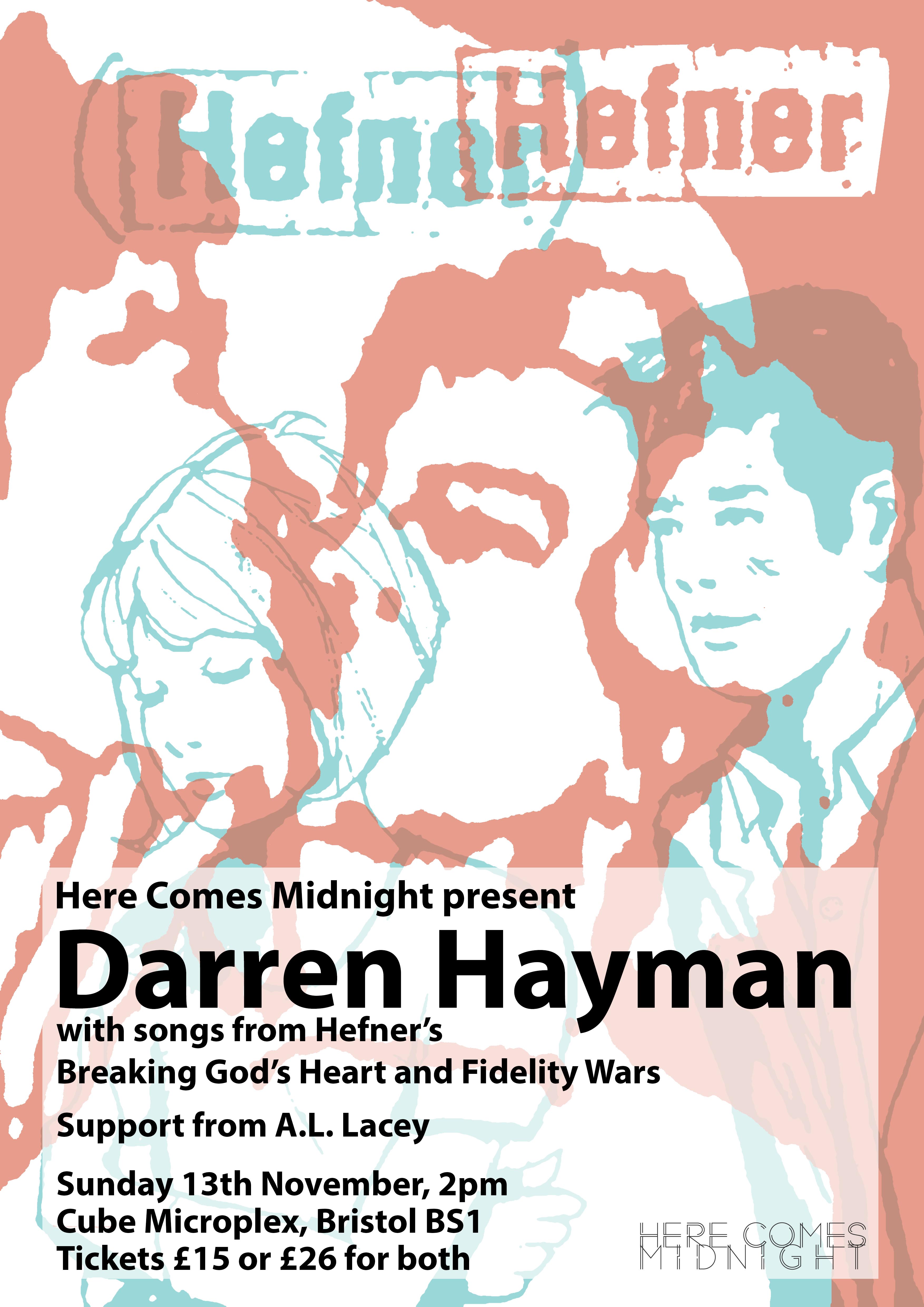 Darren Hayman returns to the Cube with not one but two shows of only Hefner material. Breaking God's Heart and Fidelity Wars in the 2pm matinee showing and We Love the City and Dead Media at 6pm. Don't miss out!