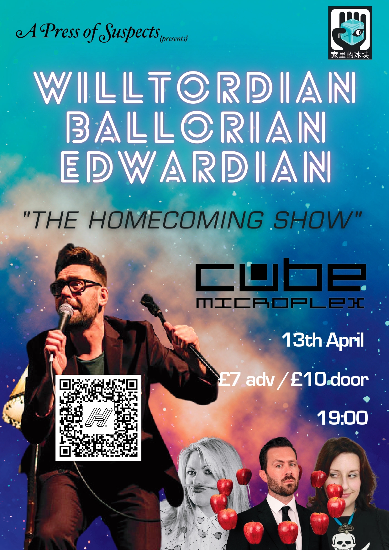In late 2017 he moved to Plymouth to be a father. In early 2018 he began performing comedy. After a short period of experimentation he became Willtordian Ballorian Edwardian: a man with a penchant for Owls, Loop Pedals, Casio keyboards from the 1980’s and FX units. He creates songs and set pieces which range from everyday occurrences to obsessions with other Comedy Performers.