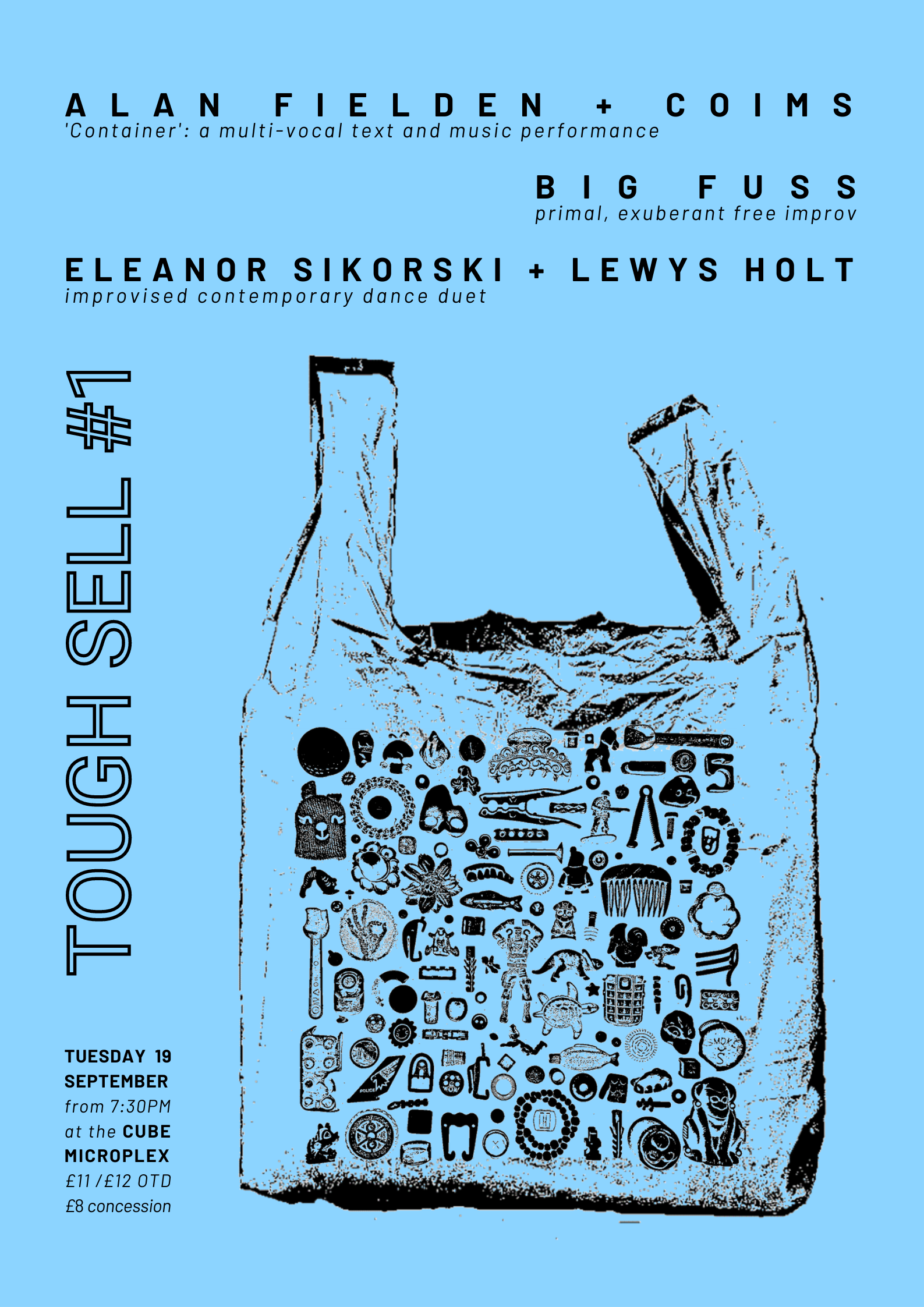 For the past 15 months, TOUGH SELL have been recommending and reviewing arts events in Bristol with our small-run, DIY zine. Now we’re über excited to welcome a clutch of multi-disciplinary artists to The Cube for our inaugural event. Come for three very different performances across music, writing, live art and dance, united by the in-the-moment thrill of improvisation.