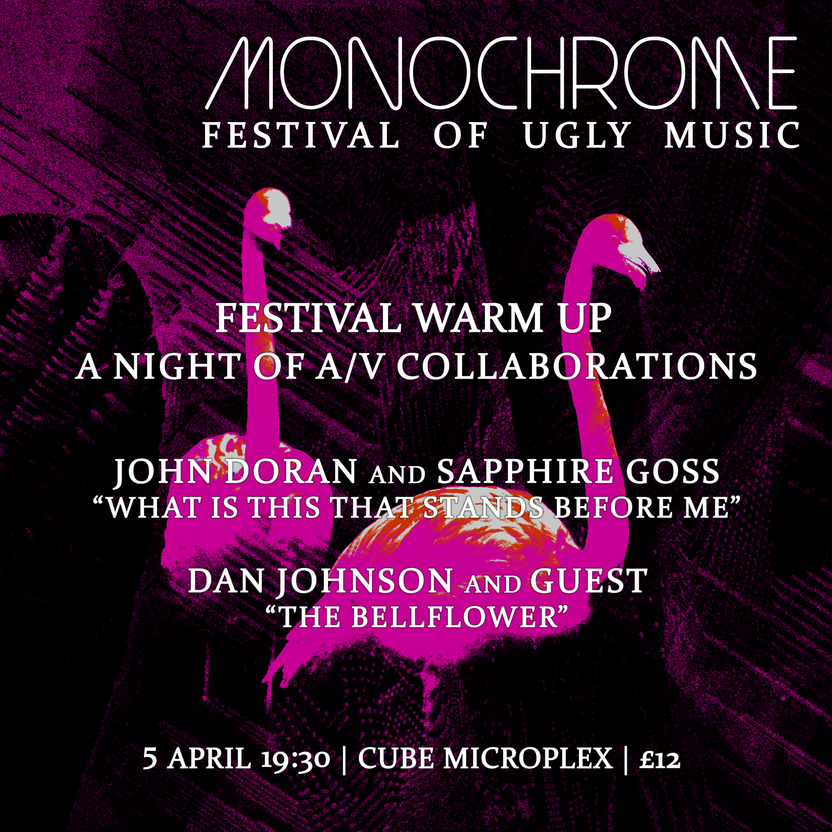 We wanted to give you something a bit different from the usual "here's 3 bands we couldn't crowbar into the main lineup" warmup event. Making the most of the Cube as both a cinema and a music venue, we're pleased to present 2 new A/V collaborations.