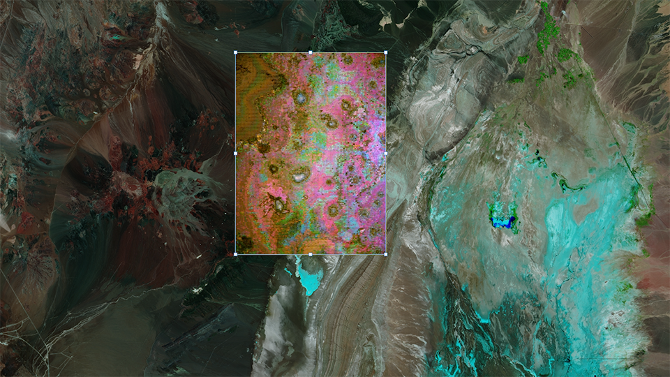 A ‘spectral index’ is a mathematical image function in which different wavelengths of the visible and infrared spectrum are combined to produce false colour images that analyse different terrestrial conditions. In the prospecting projects currently underway in search of critical minerals, these indexes are a vital tool in locating and identifying novel deposits. This single-screen video work considers how these spectral indexes frame our relationship with landscapes perpetually surveilled by orbital satellites and aerial drones. To gaze at the earth through these instrumental lenses both presumes ownership and assumes the future functionality of the planetary surface below.