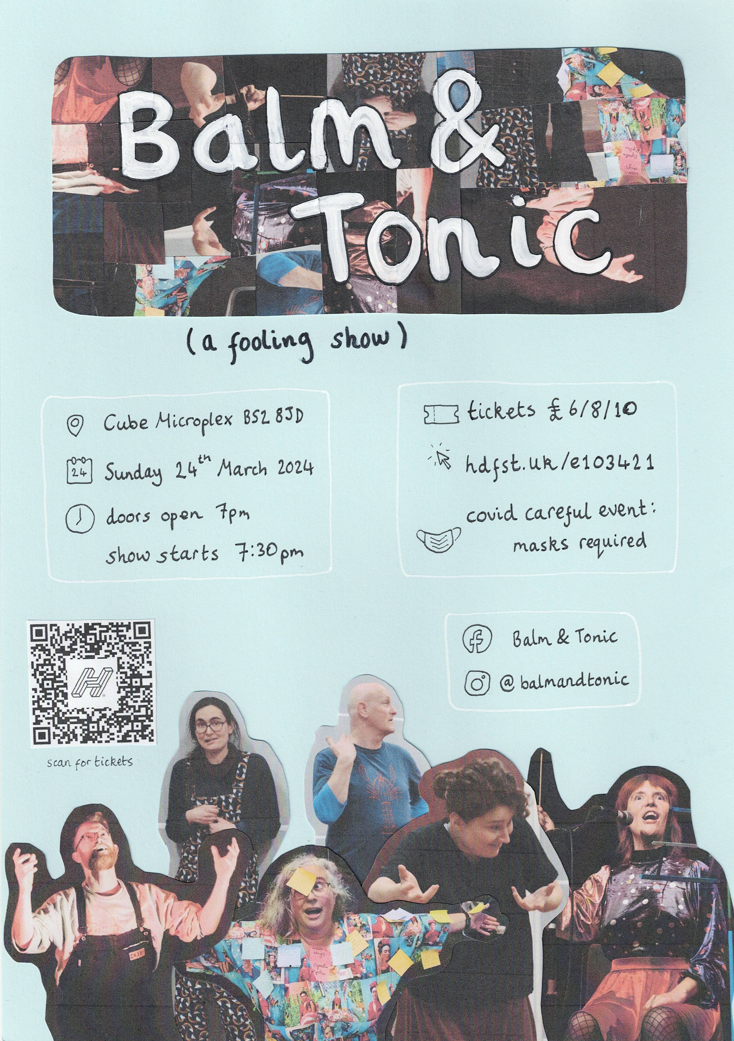 Born in February 2023, Balm and Tonic is a collective of fools and playful folk who co-create kind, accessible spaces to play, create and perform in together.