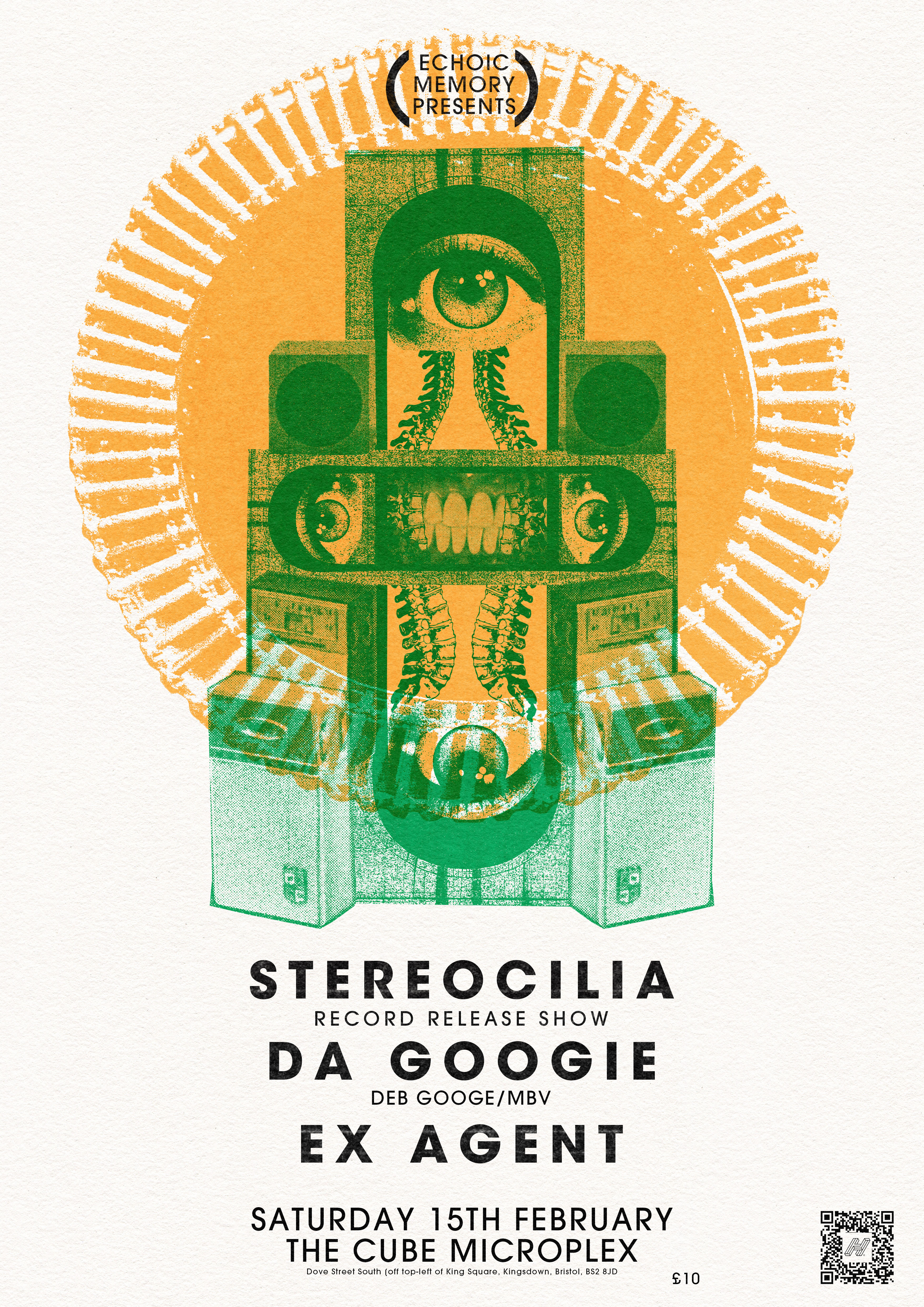 Stereocilia has release several albums and EP’s on UK independent labels, including Drone Rock Records, Low Point, Weird Beard, Champion Version and his own imprint, Echoic Memory. His 6th album “Phases” will be released on Echoic Memory in February 2025.