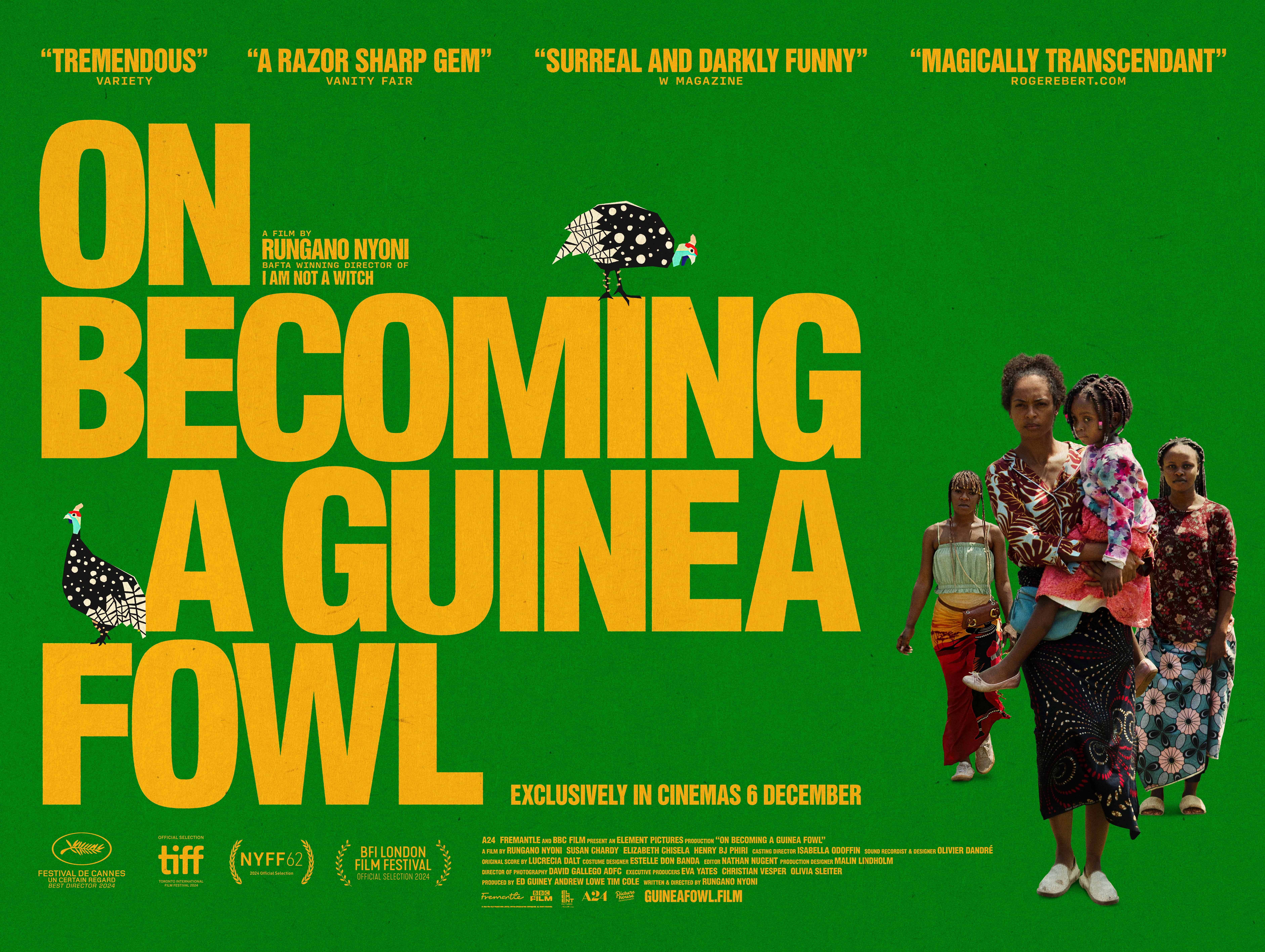 On Becoming a Guinea Fowl is a fearless parable about the toll family secrets take on their keepers and the complicated costs of speaking up. Moulding her darkly comedic surrealist signature through the reverent cinematography of David Gallego (Embrace of the Serpent, I Am Not a Witch), Nyoni’s hypnotically fresh perspective will leave audiences unsure whether to laugh, shout, or cry.