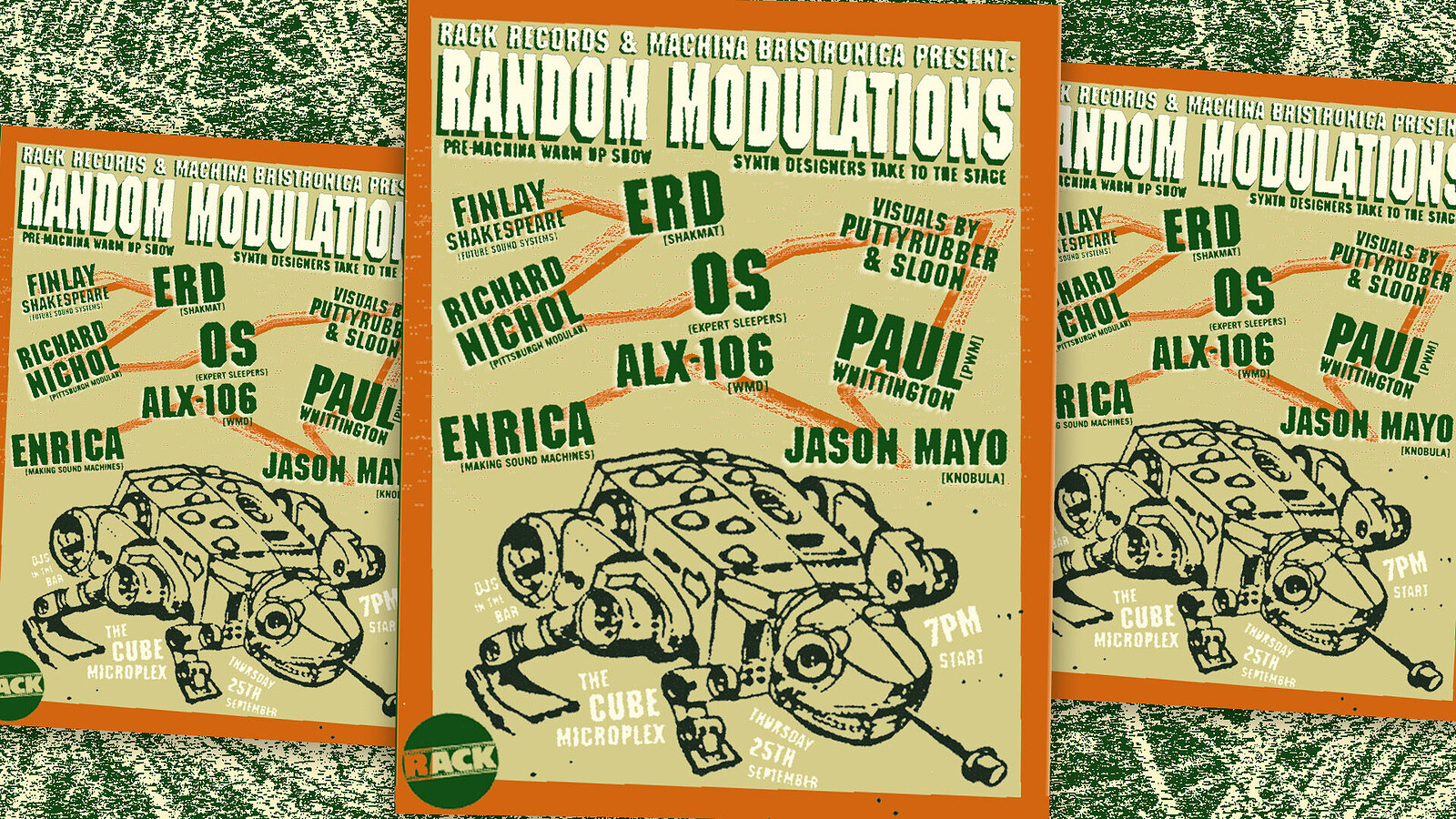 Presented by Rack Records and Machina Bristronica, and hosted by Steve Davis and Gaz Williams, a gritty, vibrant journey into the world of modular and synthesizer music.