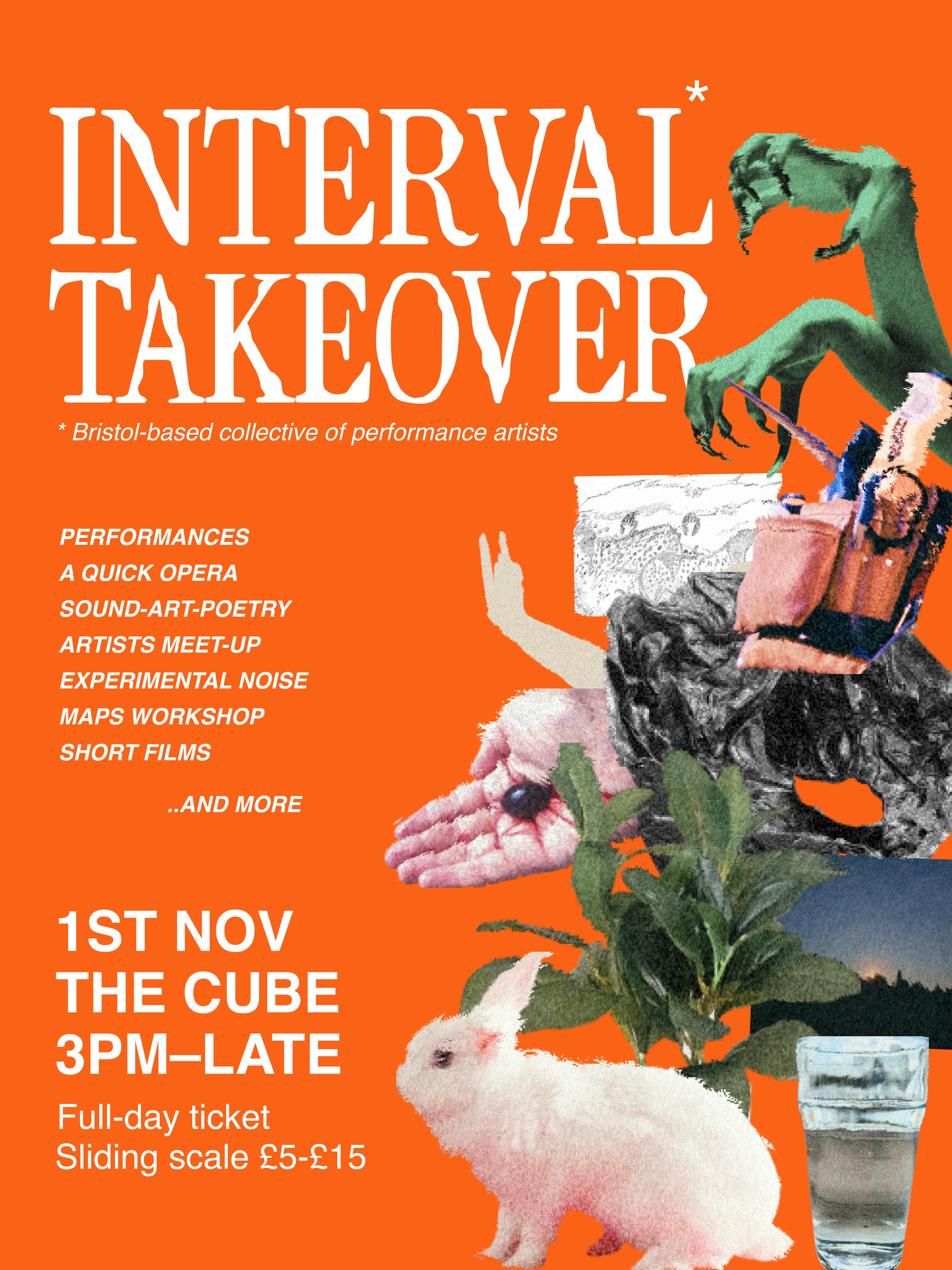 We are Interval — a Bristol-based collective of performance artists who share space, knowledge and resources above St Nicholas Market in the centre of Bristol. We are often away performing across the UK and internationally, so this is our chance to come together here at home and share what we’ve been up to. The night will be a mix of works-in-progress, fully-fledged creations, works created specifically for the occasion and, of course, a party!