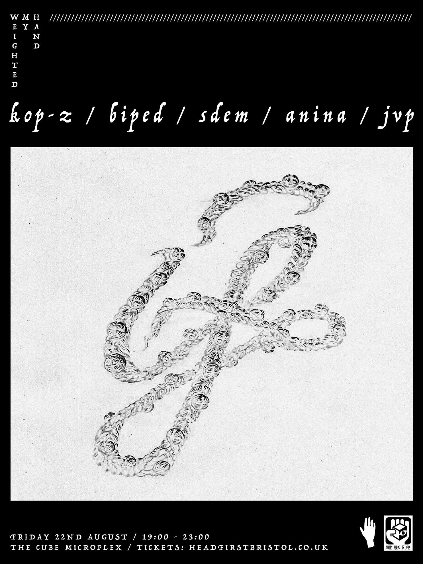 WEIGHTED MY HAND returns to The Cube Microplex, summoning aberrant solo artists from far flung corners of the UK electronic underground...
