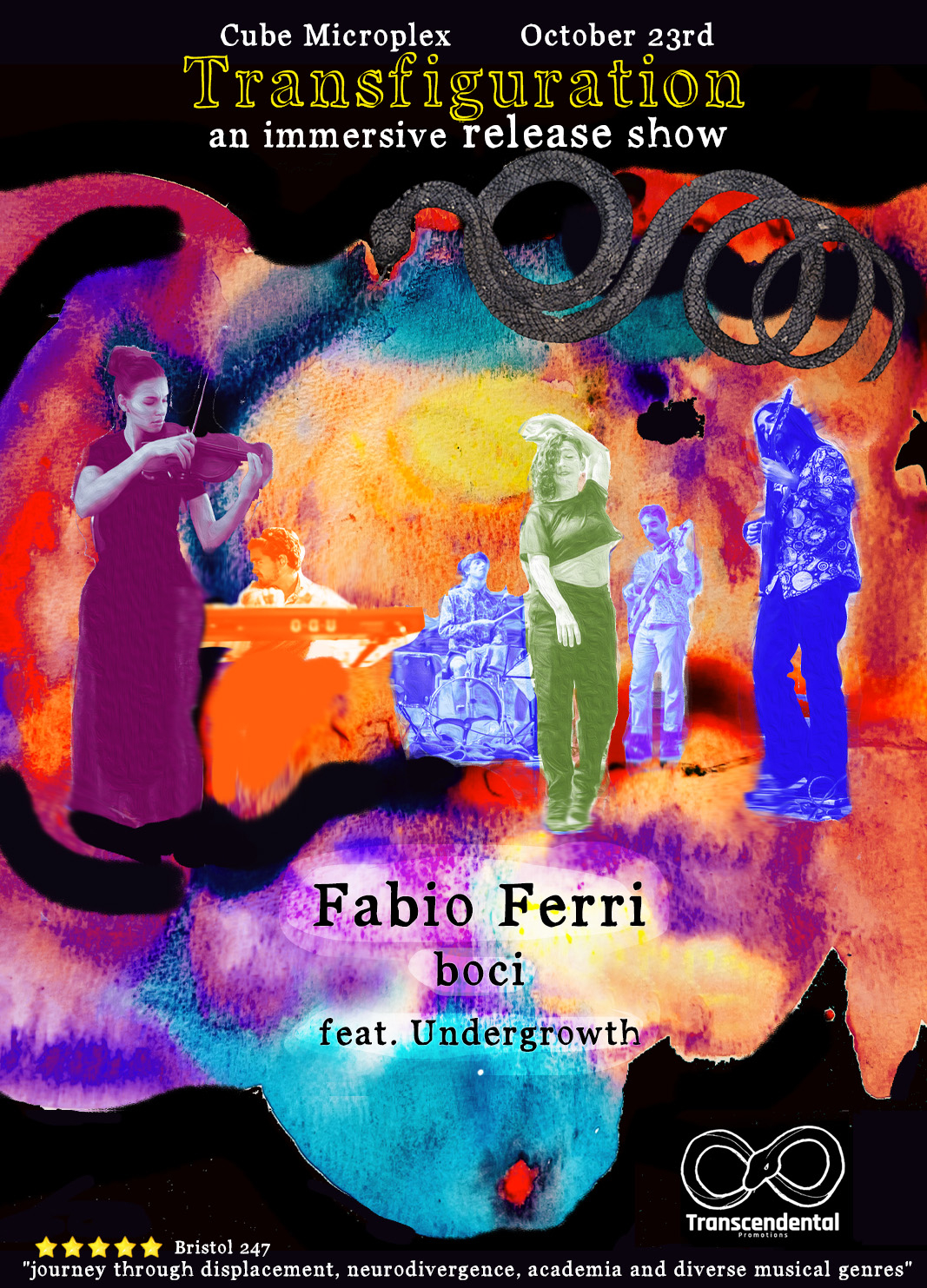 Composer and multi-instrumentalist Fabio Ferri marks the release of his album Transfiguration with an immersive, one-off show at the Cube Microplex. A Bristol-based artist blending contemporary jazz, classical and electronic sounds, Ferri creates unclassifiable music that grooves as much as it experiments.