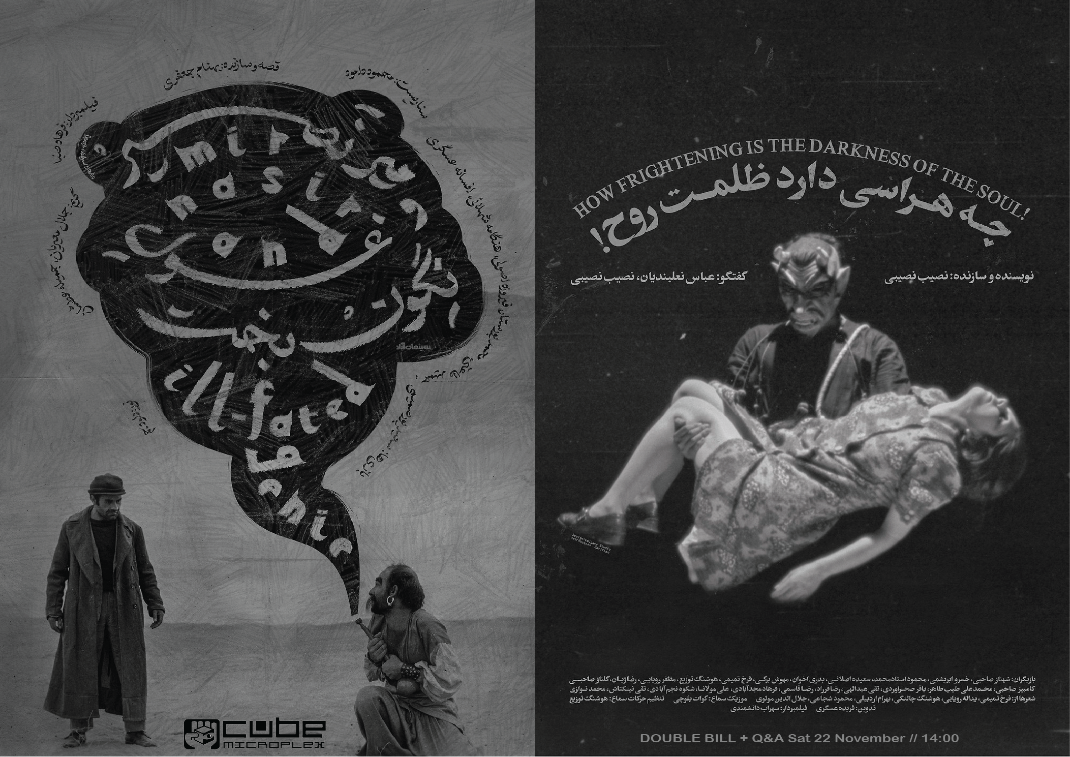 As an introduction to this neglected movement, we present a double-feature screening of How Frightful Is the Darkness of the Soul! (Nasib Nasibi, 1971) and Mir Nasir and the Ill-fated Genie (Behnam Jafari, 1975). The former, while not officially considered part of Cinema-ye Azad by its creator, Nasib Nasibi (the brother of Basir, the movement’s founder), stands in close proximity to Cinema-ye Azad and provides essential artistic and social context for understanding it. How Frightful is an avant-garde film poem about life after death, highlighting the close connections between the literary and theatrical circles with Cinema-ye Azad, especially those of artistic formations such as the Theatre Workshop (Kargah-e Namayesh) and the Poetry of Volume. Mir Nasir, about a genie freed from a bottle, represents the narrative side of Cinema-ye Azad while showcasing the movement’s taste for anthropological observation and mythical deconstruction.