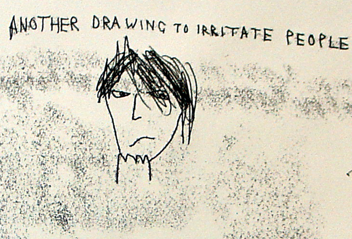In keeping with James’s raw aesthetic, the lounge area is hung erratically. The bar area, however, represents a new direction in the hanging of his work, and adheres more strictly to formal considerations.
