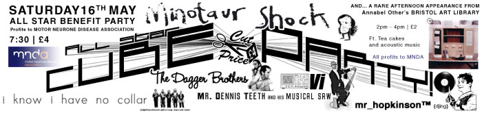 So what is being offered up is nothing short of a classic (or defiantly and gloriously oddball) Cube Line up of West County music via sweet, sweet songs, eccentric outbursts and thumping rhythms, quality cabaret, off duty dance and party DJs. Totally Bonzo, Gonzo and Bingo.