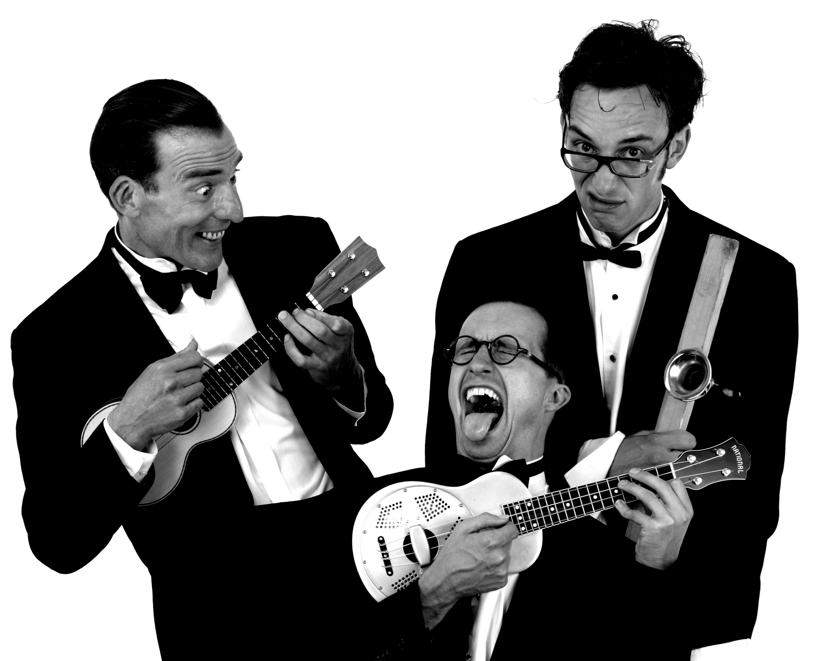 Syncopators present a rip roaring musical revue of 1930s jazz and dance band melodies, interspersed with visual gags, delightful humour and novelty moments. These three eccentric English gentlemen combine lightening fast ukulele, heart melting musical saw, tea chest bass and beautiful harmonies with hilarious consequences.