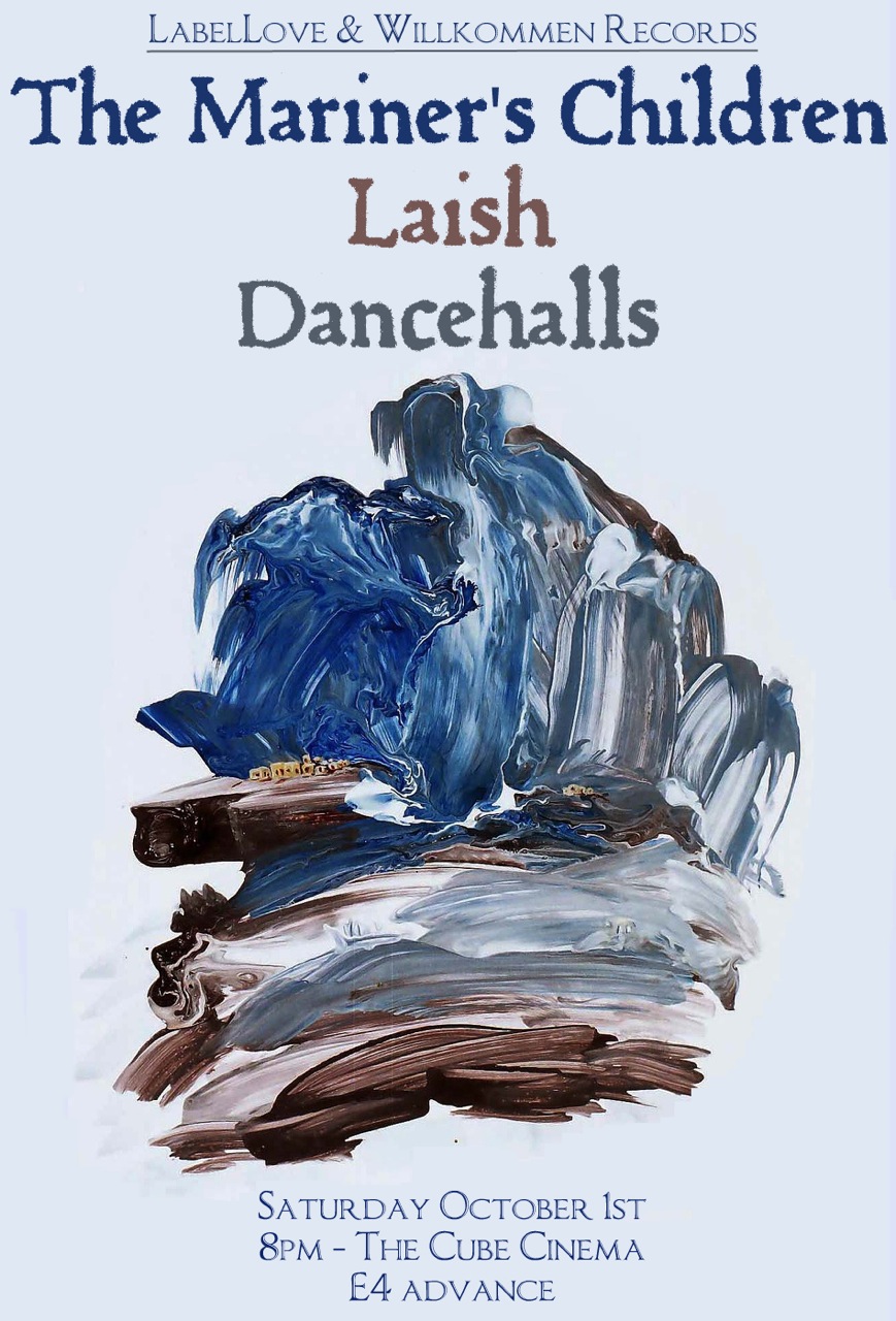 The Cube are proud to host a fund raiser for the indie labels who lost much stock in the PIAS warehouse fire in Enfield recently. The bill has been put together by the Brighton based Wilkommen Records and features dusty atmospheric Alt Folk from the acclaimed and well travelled Laish and The Mariners Children and sublime trumpet and Casio enhanced folk pop from Dancehalls.