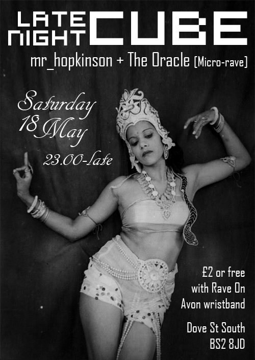 mr_hopkinson has DJed all over the planet and featured on Ninja Tune's Solid Steel, but is most at home pulling out the experimental stops - without discouraging the mental dancing - on the uber-intimate microdancefloor of Bristol's own Cube Microplex.