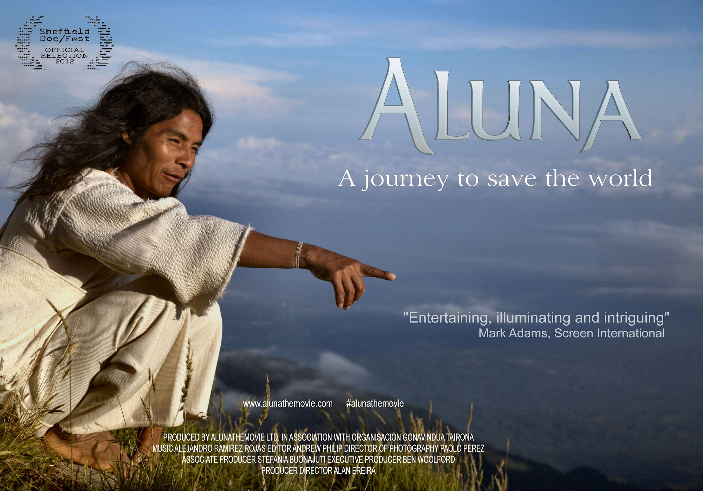 In 'Aluna' the visiting and Kogi film teams both capture the once unfilmable actives of this ancient tribe's daily work and spiritual life in the mountains. This new openness also allows us to see the environmental destruction being caused and the Kogi pinpoint its sources. With a deeper understanding in mind the film journeys with members of the Kogi to the UK to fetch 250 miles of golden thread, a thread that is used to demonstrate the interconnectedness of all nature. This is based on the Kogi concept of black lines –invisible threads of primordial thought and life-force that criss-cross the planet to form a connected network.